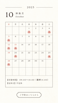 営業時間 | 10:00~17:00(最終受付 15:00) |