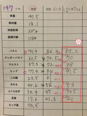 痩せていく過程でしっかりサイズ測定することでバランス良くしていくのですsign03